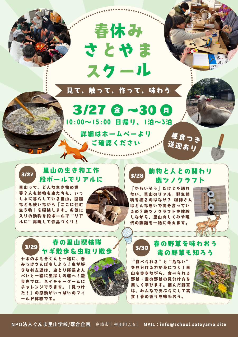 春の里山で、見て・触れて・作って・味わう4日間。